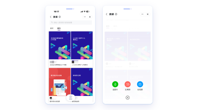 - 移动端轻量化录制微课,支持图片/视频,随时随地创作企业专属学习内容