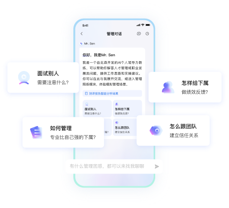 - 管理者成长,100 + 跨行业剧本 + AI 演练辅导,多维度量化成长轨迹