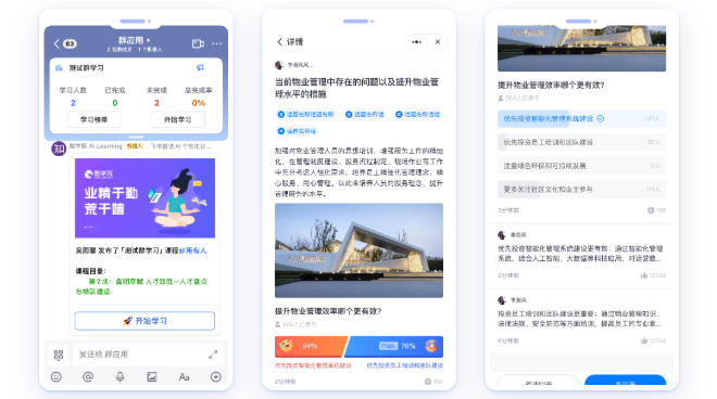 - 群内学习搭配运营工具,简化学习流程提升员工参与度